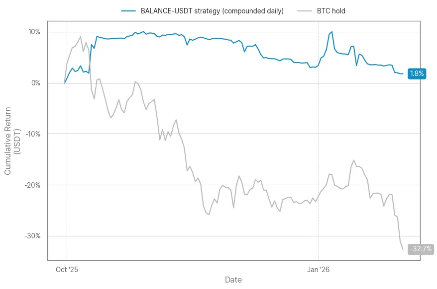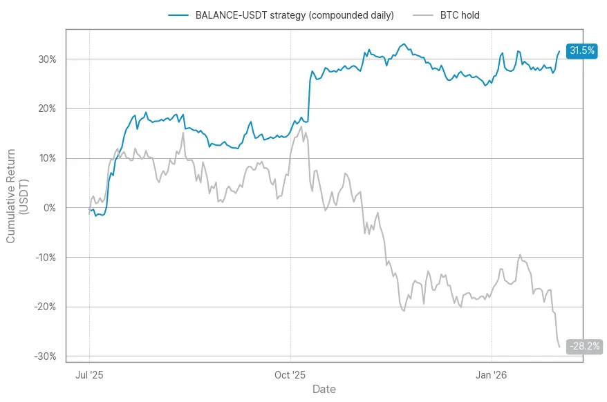 A Well-Balanced, BTC- and ETH-Focused Spot-only Portfolio for Steady ReturnsLive Trading Record (vs. BTC hold)